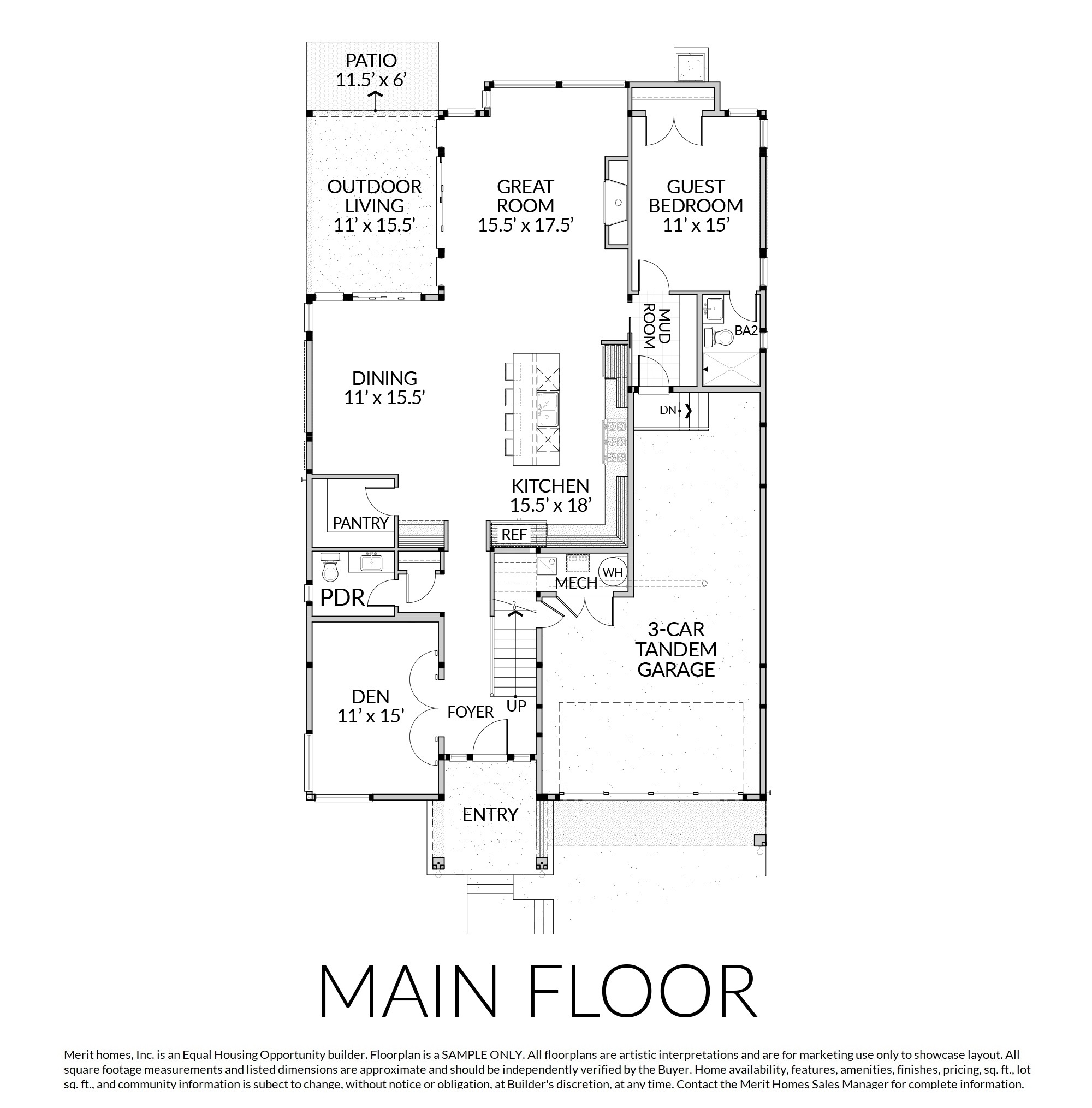 Merit Homes, Inc. is an Equal Housing Opportunity builder. Home availability, features, finishes, pricing, sq. ft., and community information is subject to change without notice or obligation, at Builder's discretion, at any time. Completion dates are estimates only. Images and renderings are representational only. Home sq. ft. and lot sq. ft. are approximate. Siteplans and community maps are artistic interpretations and are for marketing use only. Contact our Sales Manager for complete information.
